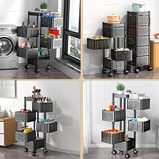 Daugiafunkcis metalinis stelažas su 5 sukiojamais krepšeliais ir ratukais – tvarkai, stiliui ir patogumui namuose!Ieškote praktiško, modernaus ir kompaktiško sprendimo savo virtuvei, voniai ar net kosmetikos priemonėms laikyti? Šis daugiafunkcis...