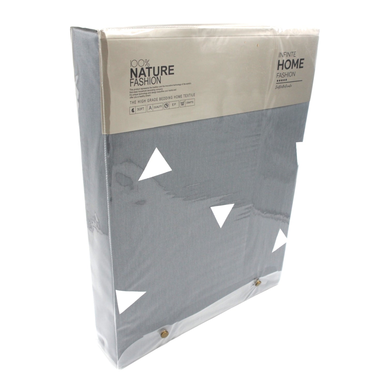 Patalynės dizainas – minimalistinis, modernus ir universalus. Pilkas fonas papildytas subtiliais baltų trikampių akcentais, kurie suteikia patalynei lengvumo ir šiuolaikiško charakterio. Toks raštas puikiai dera įvairiuose interjeruose – tiek skandinaviškuose, tiek industriškuose ar moderniuose namuose.