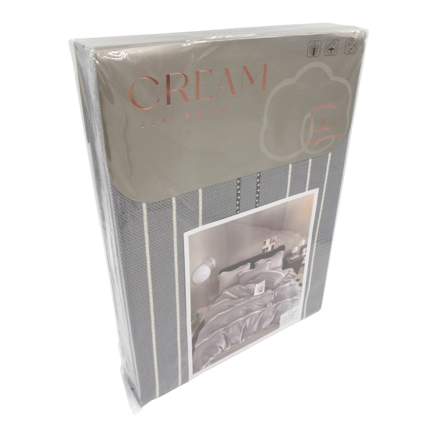 Komplektas stebina savo moderniu, subtiliu dizainu: elegantiškos pilkos spalvos raštai su plonomis linijomis ir minimalistinėmis detalėmis puikiai tinka tiek šiuolaikiškam, tiek klasikiniam interjerui. Medžiaga minkšta, maloni, tankaus audimo – todėl išlaiko formą ir spalvą net po daugybės skalbimų.