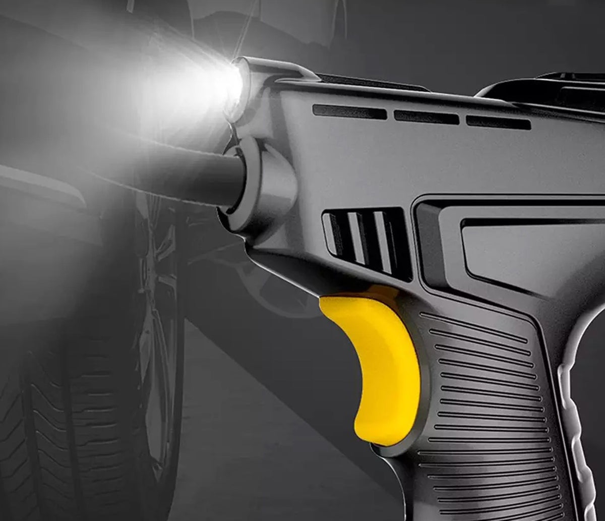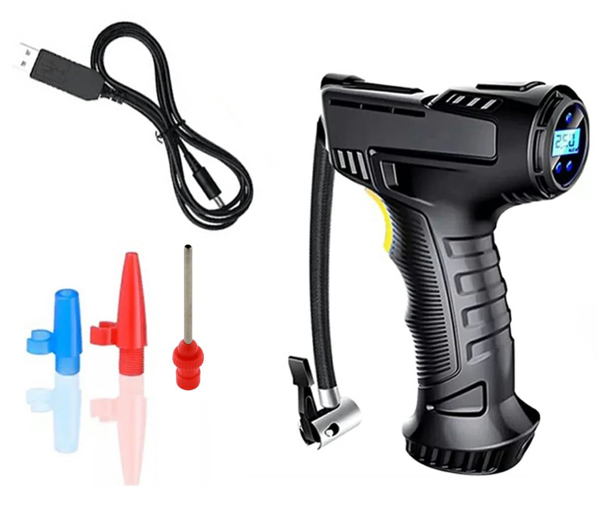Kompaktiškas, akumuliatorinis padangų pripūtimas. Maitinamas iš įmontuotos baterijos, kraunamas per USB laidą (pridedamas). Patogi rankena leidžia lengvai pripūsti ratus, o lengvai skaitomas LCD ekranas leidžia lengvai nustatyti tam skirtą oro slėgį ir pakeisti įrenginį. Patogi, lanksti žarna ir papildomi keičiami antgaliai (3 vnt.) palengvina darbą su įrenginiu.