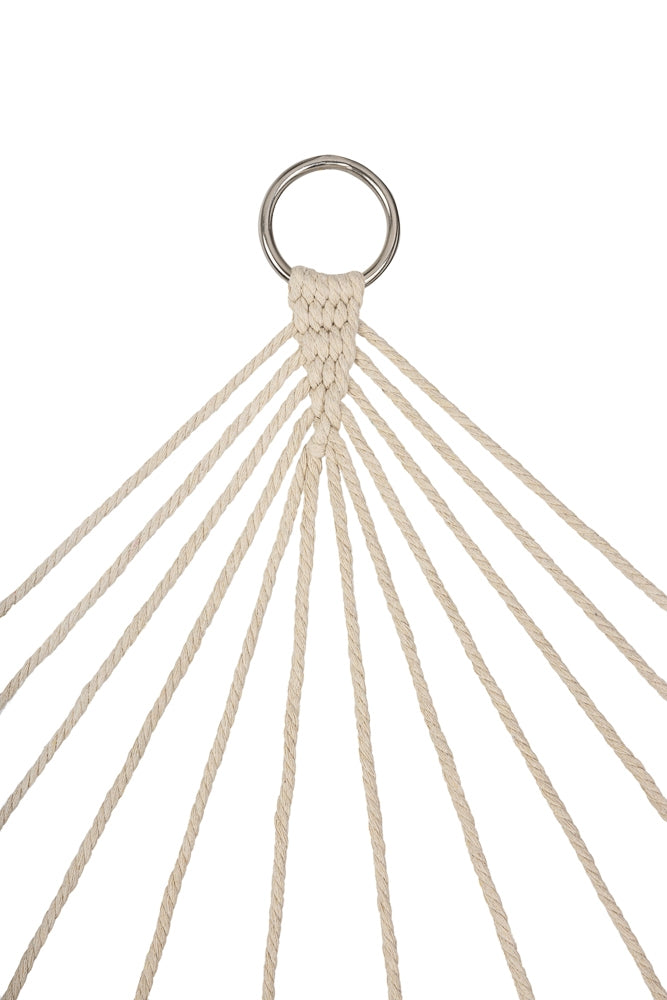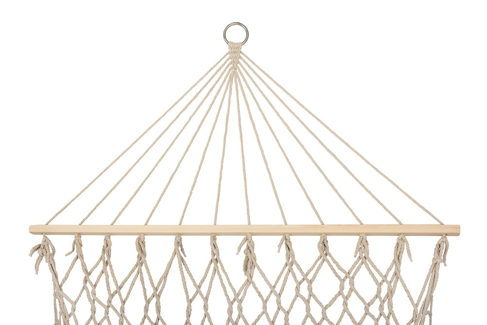 Boho stiliaus sodo hamakas puikiai papildys bet kurį kiemą. Dėl to poilsis lauke bus unikali patirtis. Neutrali hamako spalva puikiai derės su sodo žaluma, todėl visa kompozicija bus maloni akiai. Kraštuose yra kuteliai, suteikiantys žavesio visam gaminiui. Hamakas pagamintas iš virvių, kurios gali atlaikyti iki 200 kilogramų.