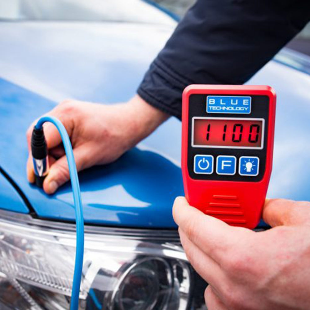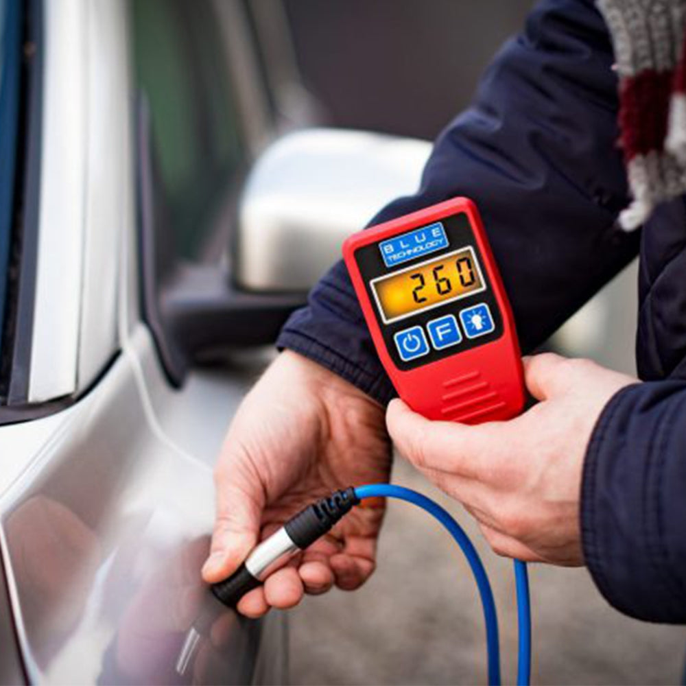 Rankinis dažų storio matuoklis, skirtas matuoti automobilio kėbulo dažų storį. Atlieka matavimus ant plieno, cinkuoto plieno ir aliuminio paviršių. Išsiskiria itin plačiu matavimo diapazonu (0 ~ 5000 μm) ir dideliu tikslumu. Specialus matuoklio zondas pritvirtintas prie prietaiso 60 cm ilgio laidu ir leidžia patogiai atlikti matavimus ant įgaubtų ir išgaubtų paviršių, net ir sunkiau pasiekiamose vietose.