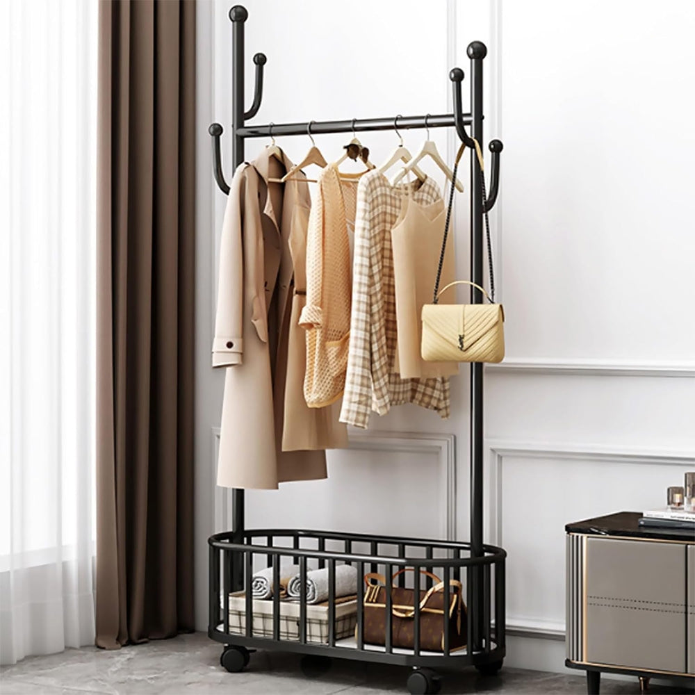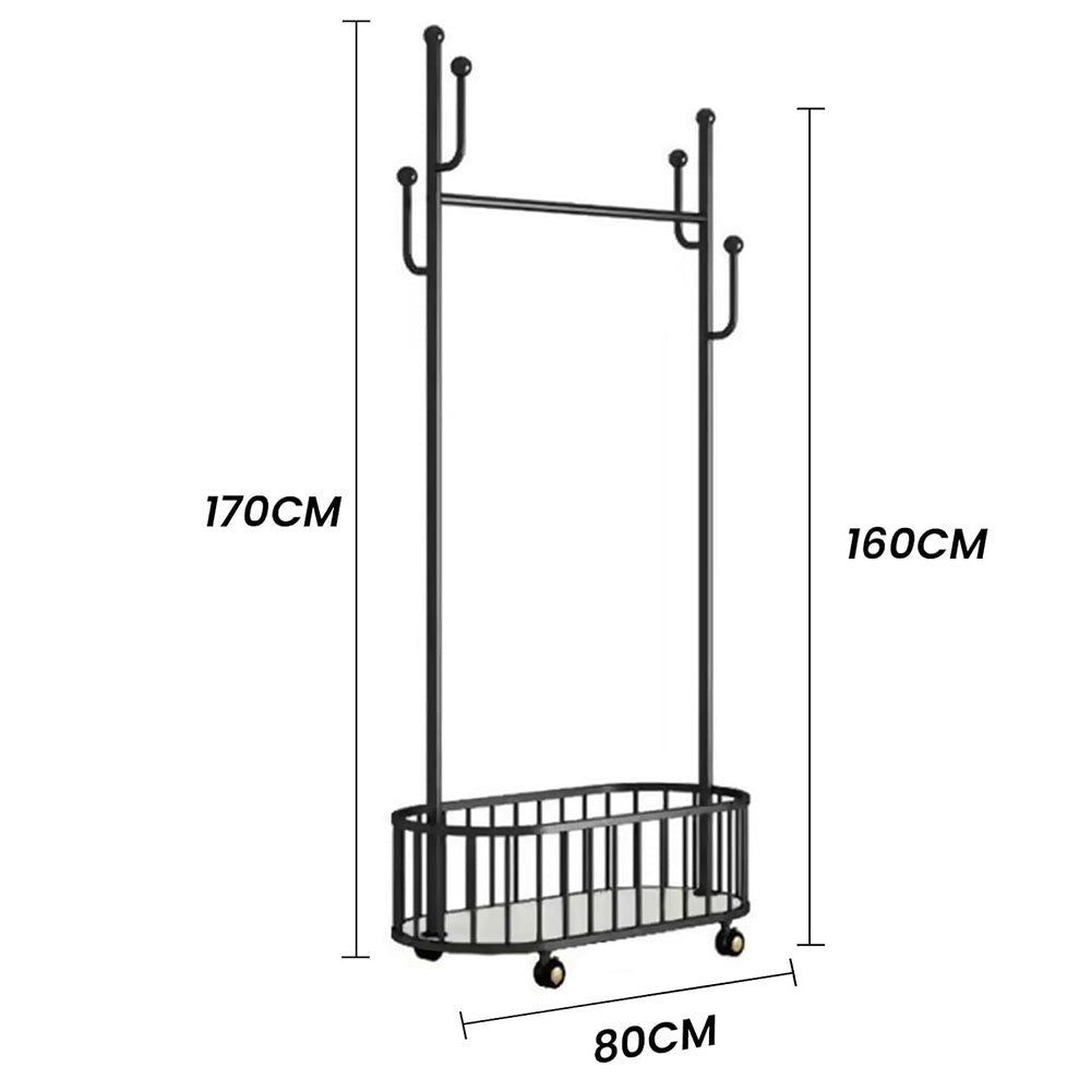 Ši modernaus dizaino drabužių kabykla yra ne tik stilinga, bet ir ypač funkcionali – puikiai tinka prieškambariui, miegamajam ar persirengimo kambariui. Tvirta metalinė konstrukcija su kokybišku milteliniu padengimu užtikrina atsparumą rūdims ir ilgaamžiškumą, net jei kabinsite sunkius paltus ar žiemines striukes.