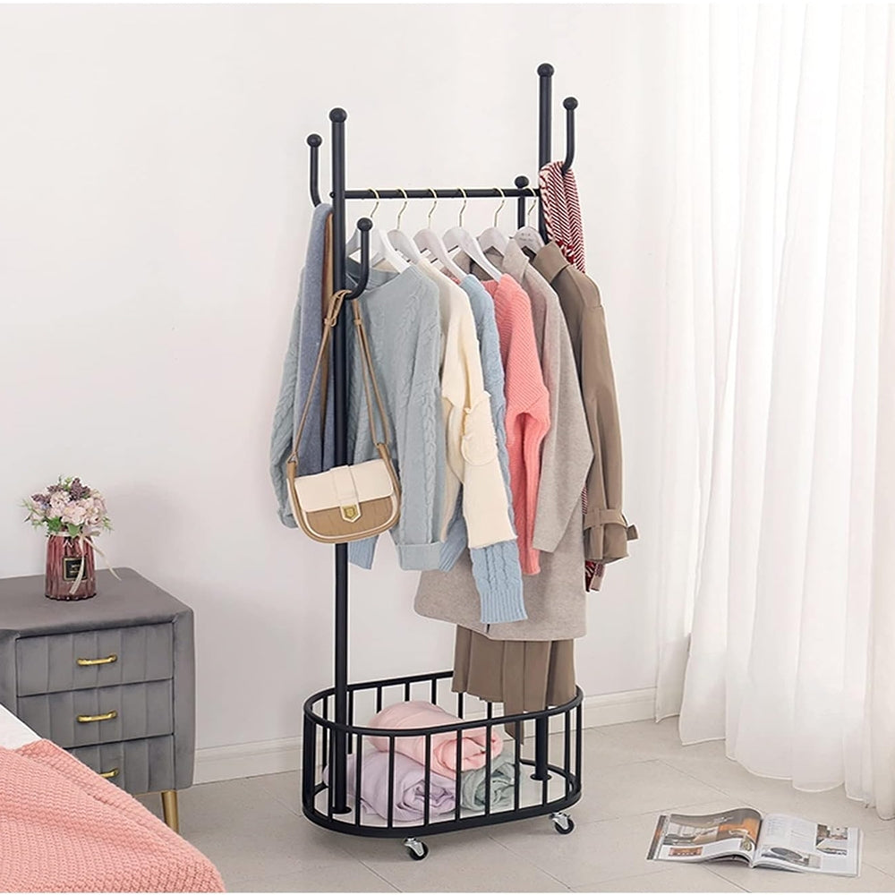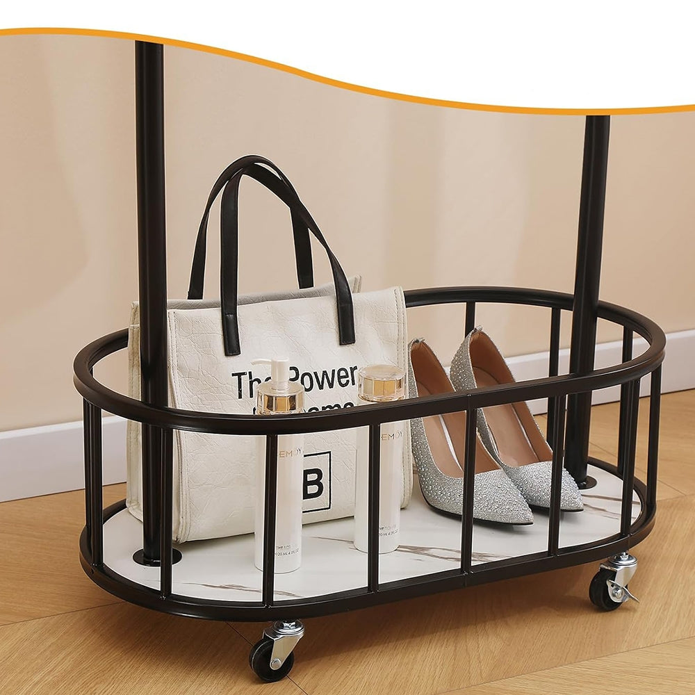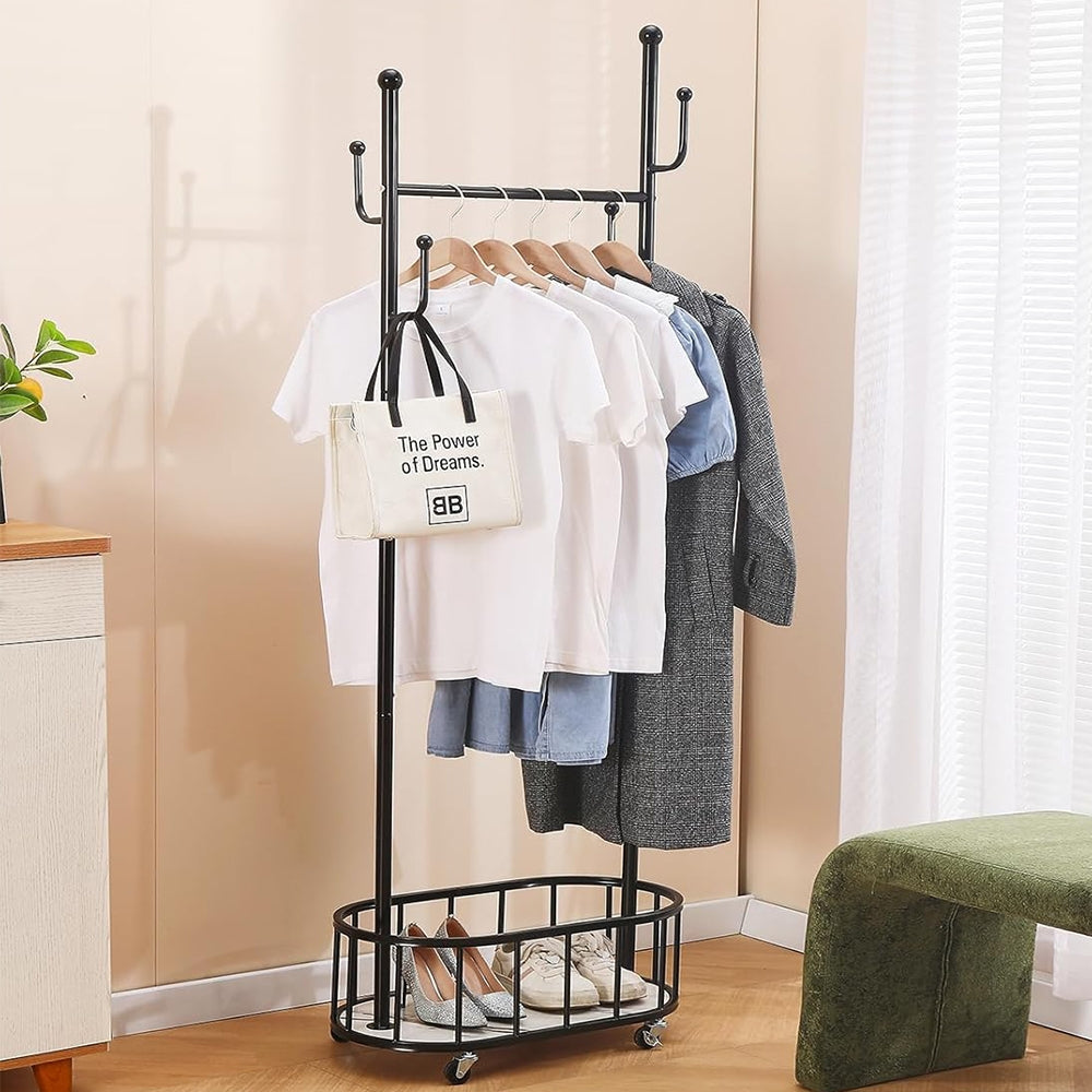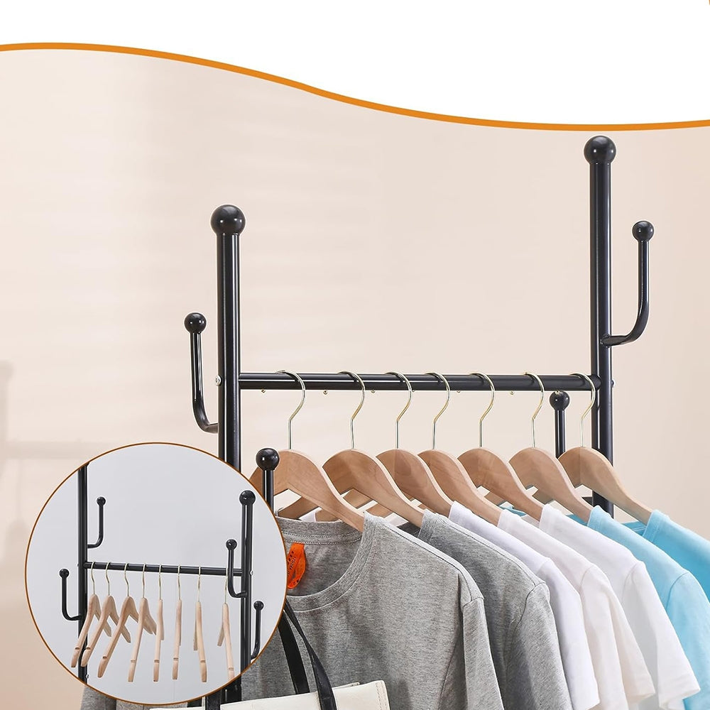 Drabužių kabykla su ratukais ir lentyna (80x40x170 cm)