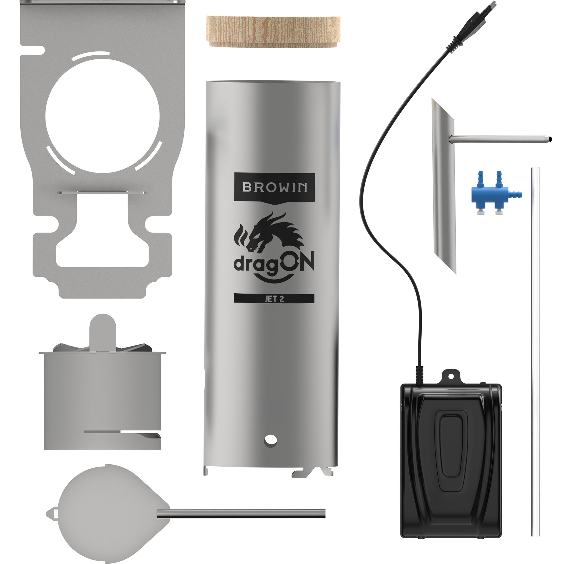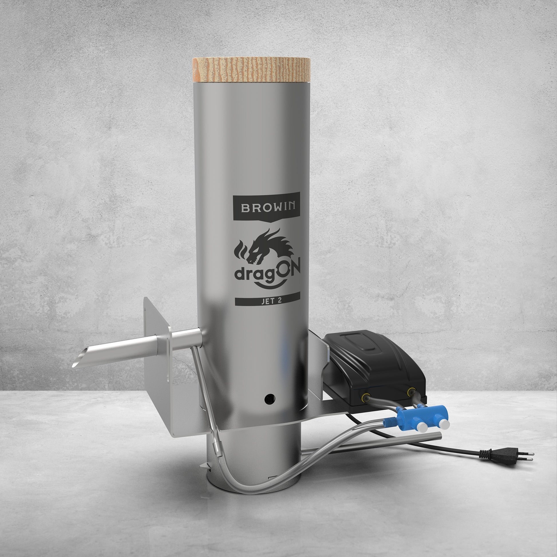 Galinga elektrinė orapūtė su oro srauto reguliavimu – leidžia optimizuoti drožlių degimo efektyvumą. Orapūtė pritvirtinta prie specialios platformos, todėl jos vibracijos perduodamos degimo kamerai, pagerinant drožlių slinkimą. Oro srautą galima reguliuoti jungikliu ir slėgio reguliatoriumi, pritaikant prie rūkyklos tūrio.