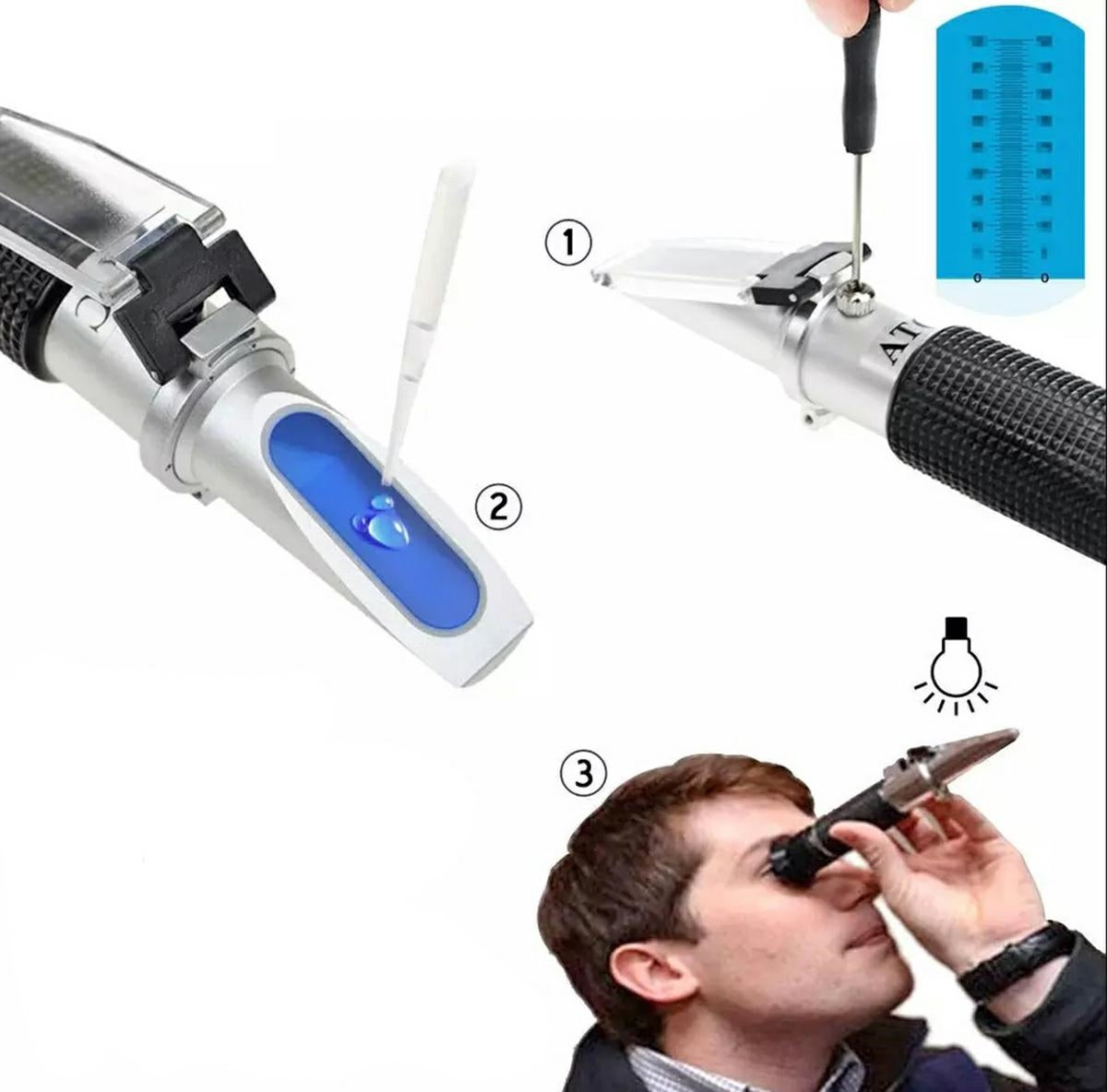Kompaktiškas, optinis automobilio eksploatacinio skysčio testeris. Tai leidžia greitai išmatuoti elektrolito kiekį akumuliatoriuje ir aušinimo bei glikolio pagrindu pagamintų skysčių užšalimo temperatūrą. Tiesiog pipete paimkite skysčio mėginį, padėkite jį ant refraktometro valdymo skydelio ir vaizdo ieškikliu perskaitykite indikaciją.