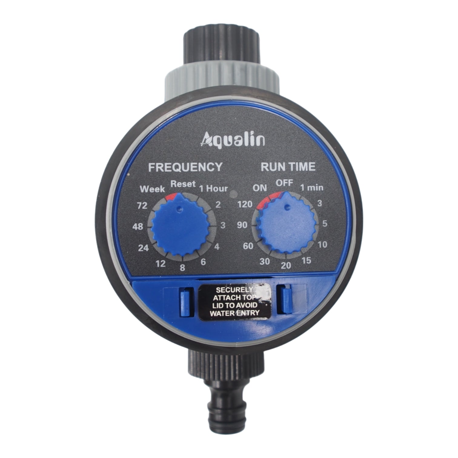Patikimas ir paprastai valdomas Aqualin laistymo laikmatis, skirtas automatiniam sodo, vejos, šiltnamio ar daržo laistymui. Mechaninis valdymas leidžia greitai nustatyti laistymo intervalus ir trukmę be sudėtingų programavimų ar baterijų.