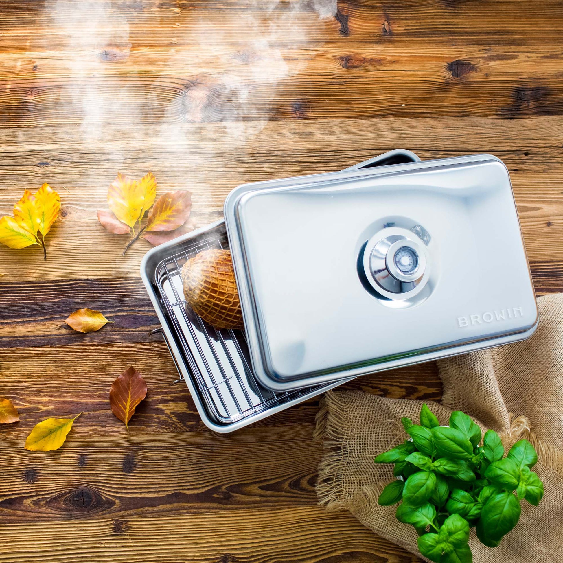Ši kompaktiška mobili rūkykla leidžia paruošti gardžius rūkytus patiekalus net ir mažose erdvėse, pavyzdžiui, balkone ar terasoje. Nepaisant mažo dydžio, įrenginys suteikia daug galimybių – galite rūkyti žuvį, mėsą, sūrį, kiaušinius ir dešras. Rūkykla pagaminta iš aukštos kokybės nerūdijančio plieno, tinkamo sąlyčiui su maistu, todėl yra patvari, higieniška ir lengvai prižiūrima.