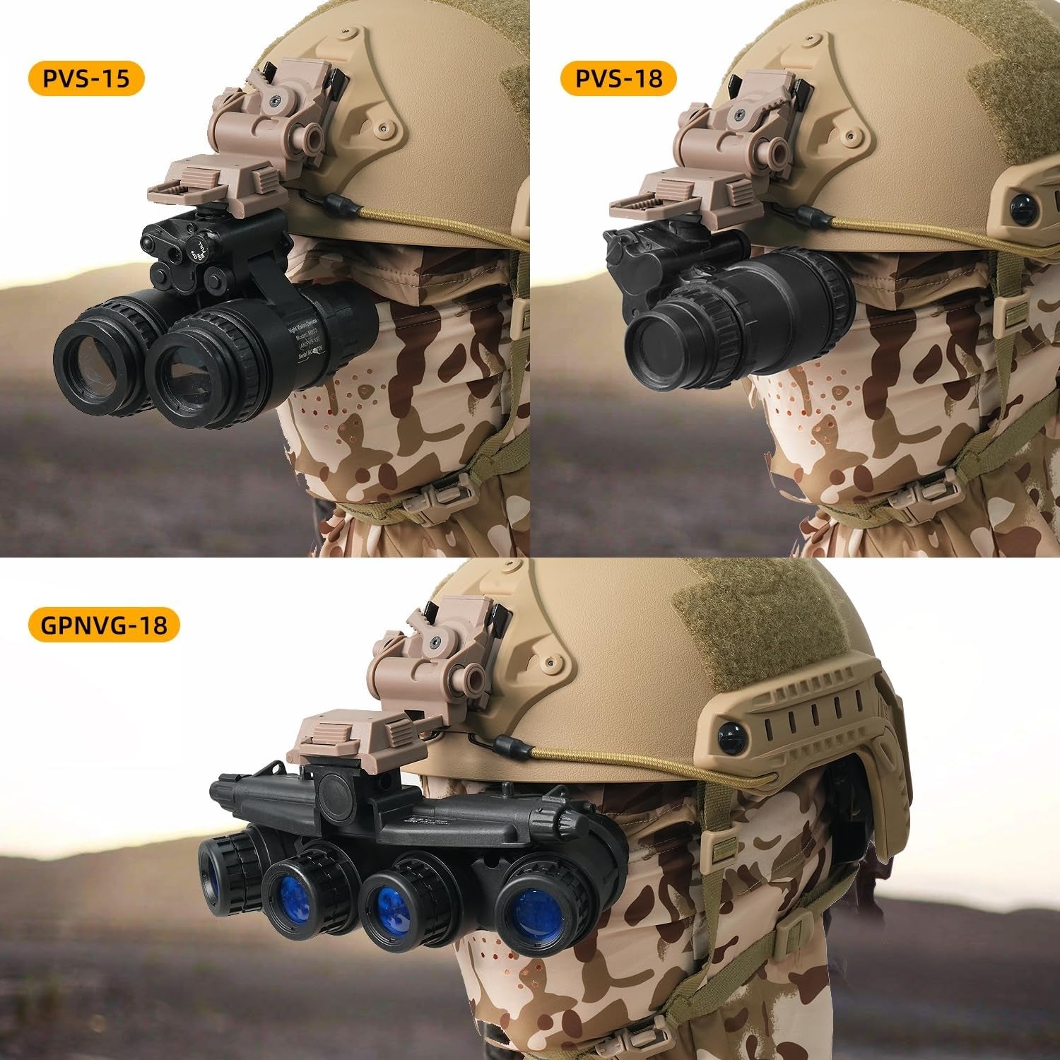 Universalus plastikinis laikiklis yra skirtas patikimam naktinio matymo prietaisų tvirtinimui prie šalmų su NVG (Night Vision Goggle) laikiklio sąsaja. Suderinamas su tokiais modeliais kaip PVS-15, PVS-18, GPNVG-18.