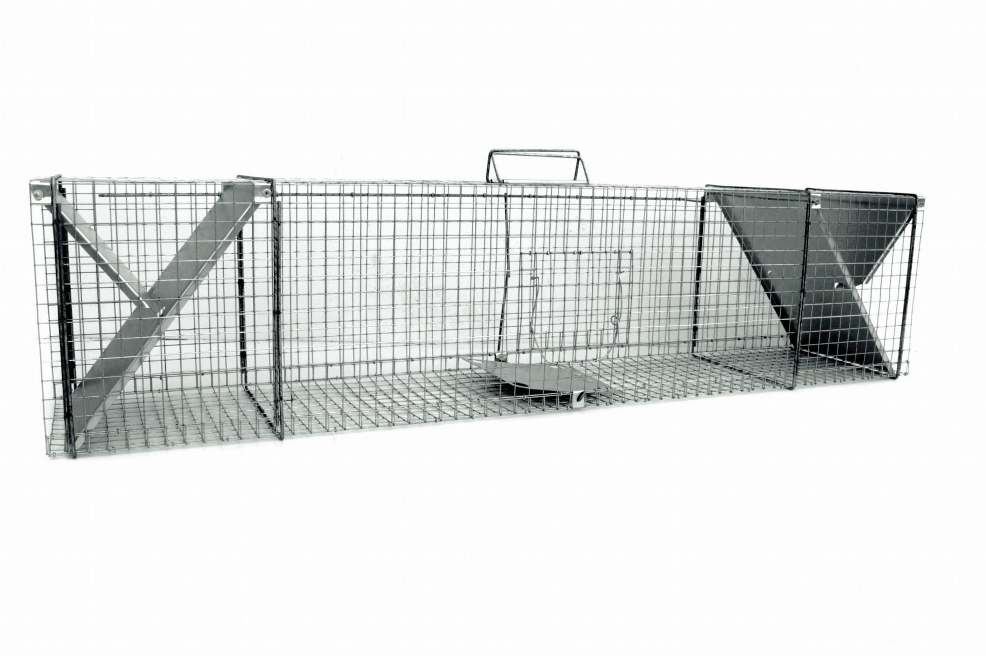 Nešiojimo rankena - spąstai standartiškai komplektuojami su metaliniu rankos uždangalu - tai svarbu nešant sugautą gyvūną - metalinis rankos uždangalas apsaugos jus nuo galimo užpuolimo dantimis ar nagais.