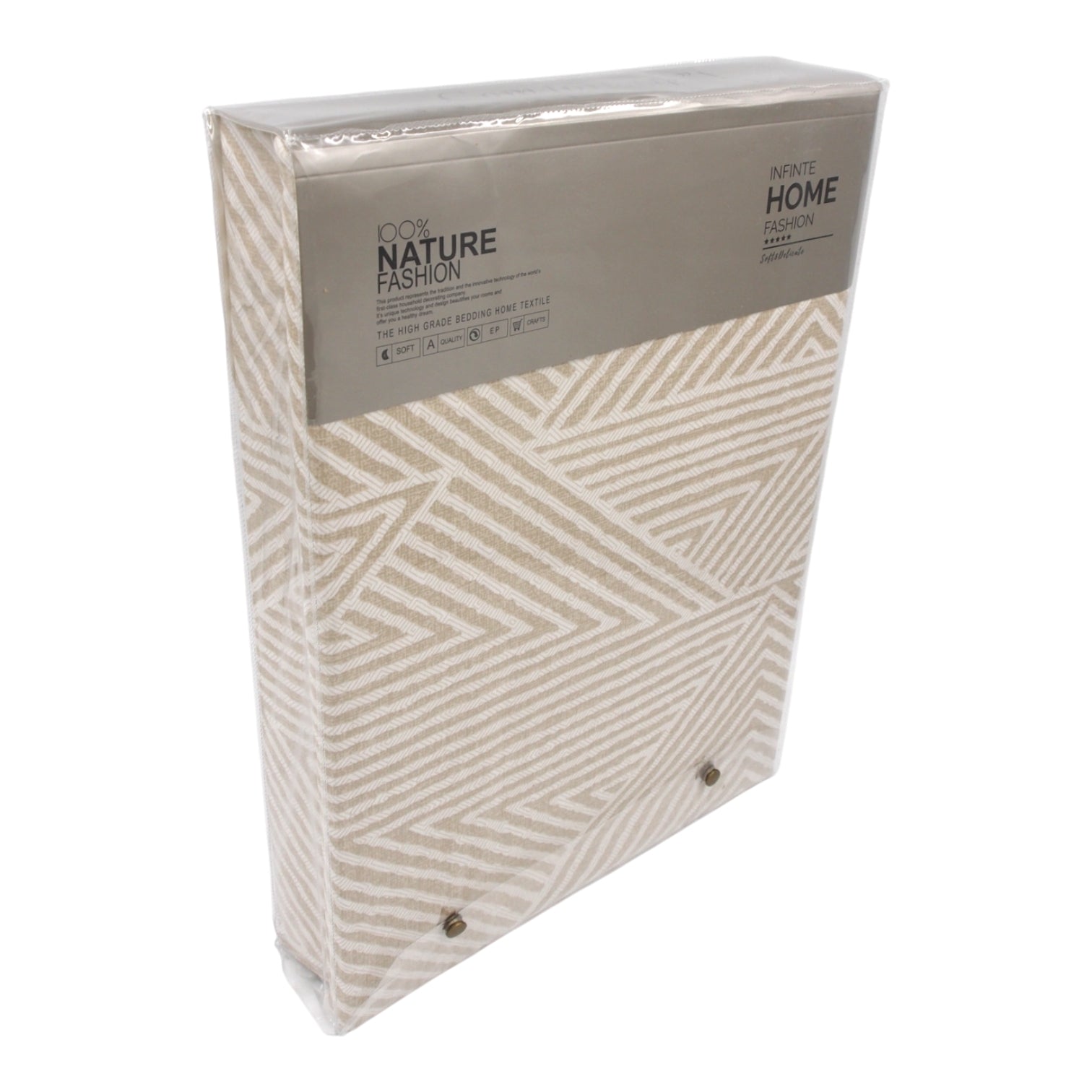 Komplektas pasižymi išskirtiniu, smėlio spalvos geometriniu raštu. Subtilios kreminio ir švelnaus rusvo atspalvių linijos sukuria modernų, bet kartu labai jaukų lovos įvaizdį. Ši spalvinė gama idealiai dera tiek prie šviesių, tiek prie tamsių interjero detalių – suteikdama miegamajam ramybės, švaros ir natūralios šilumos pojūtį.