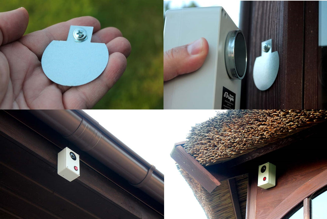 - Prietaisą lengva įdiegti, nes tik „Dragon Ultrasonic“ prietaisai pirmą kartą naudoja magnetinį laikiklį. Su šiuo laikikliu galite lengvai, greitai ir saugiai pritvirtinti repelerį prie metalinio paviršiaus. Pakanka metalo paviršiaus gabalo, pvz., Vamzdžio, turėklo, latako, metalinės palangės, knygų spintos, stogo konstrukcijos, šildytuvo.