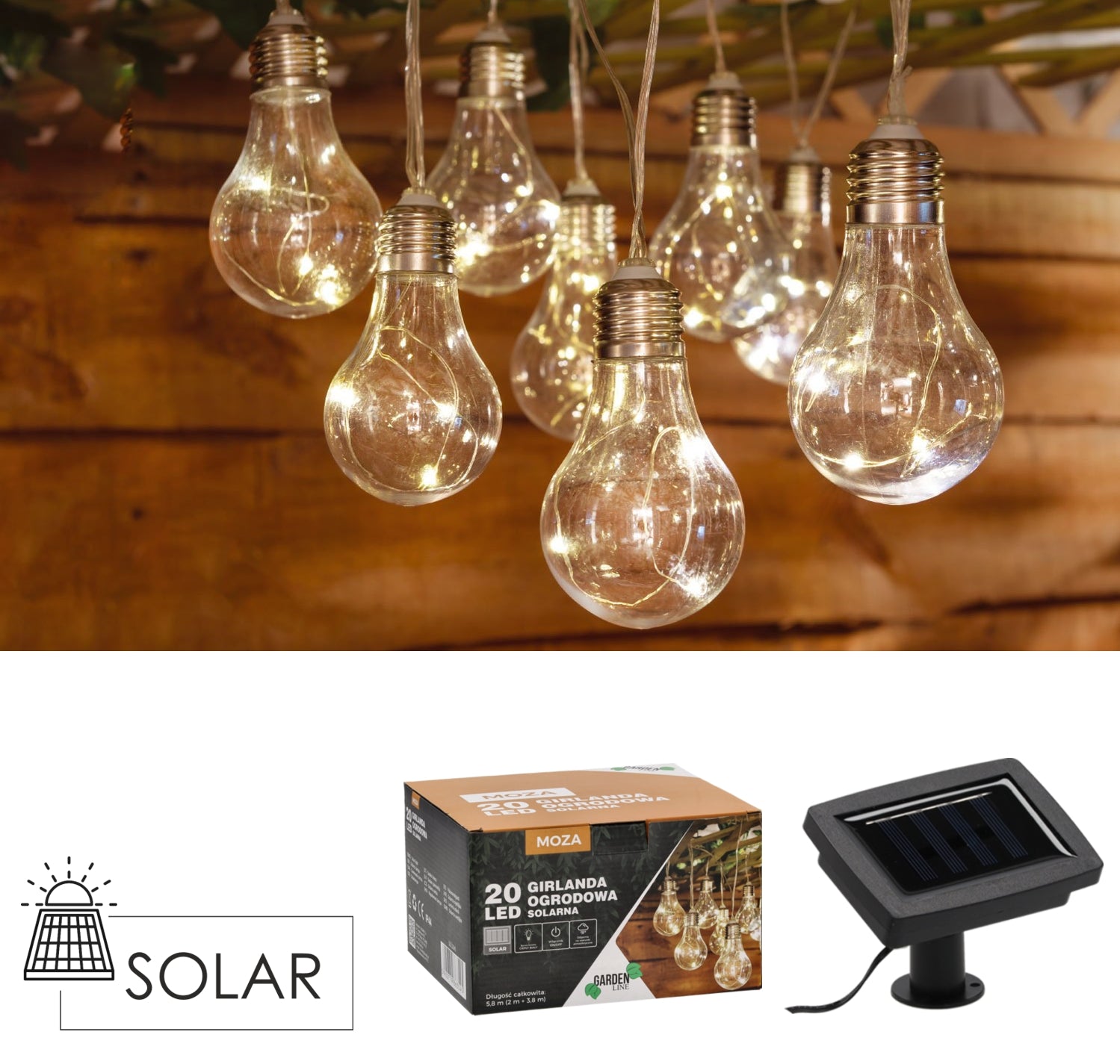 Saulės energija maitinama LED girlianda su lemputėmis 20 LED, 5,8 m