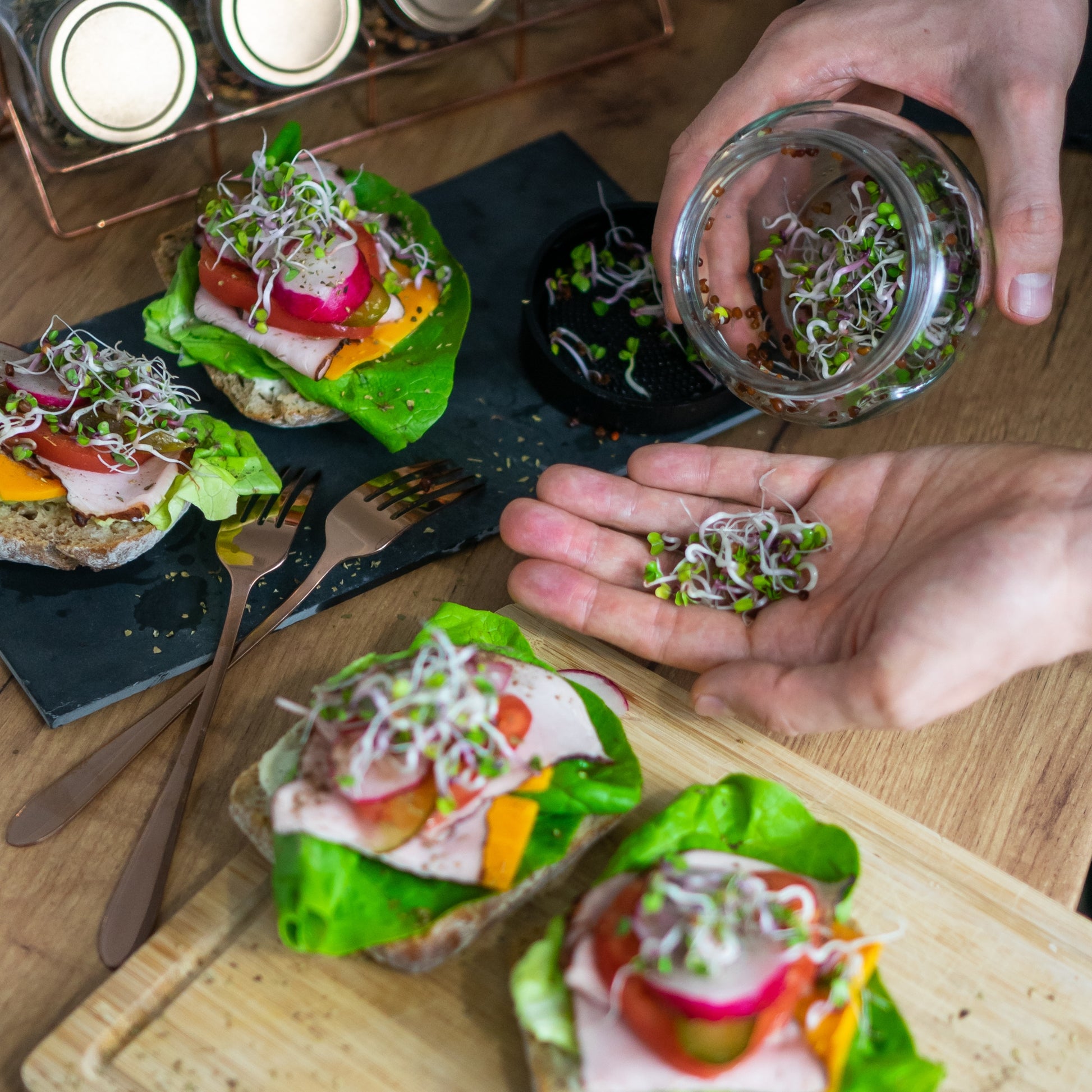 Švelnus mišinys (liucerna, mung pupelės, daikon ridikai, China Rosa ridikai, žalios, rudos ir raudonos lęšiai) – 5 g