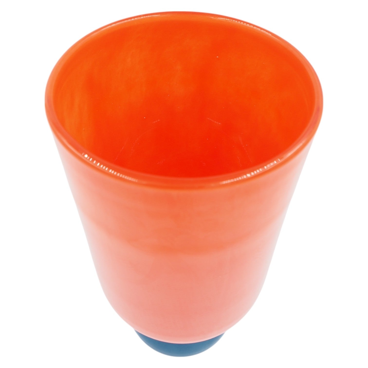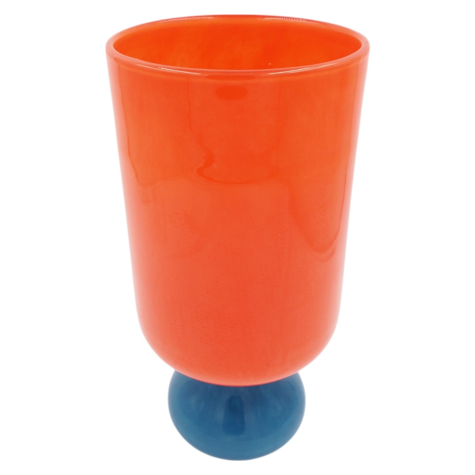Moderni ir akį traukianti stiklinė vaza – ryškios raudonos spalvos su kontrastinga mėlyna kojele – puikiai pagyvins bet kurį interjerą. Tai ne tik praktiškas indas gėlėms, bet ir išraiškinga dizaino detalė, kurią galite naudoti kaip akcentinį dekoro elementą. Dėl savo dydžio ir išskirtinės formos ši vaza idealiai tinka tiek moderniems, tiek eklektiškiems interjerams.