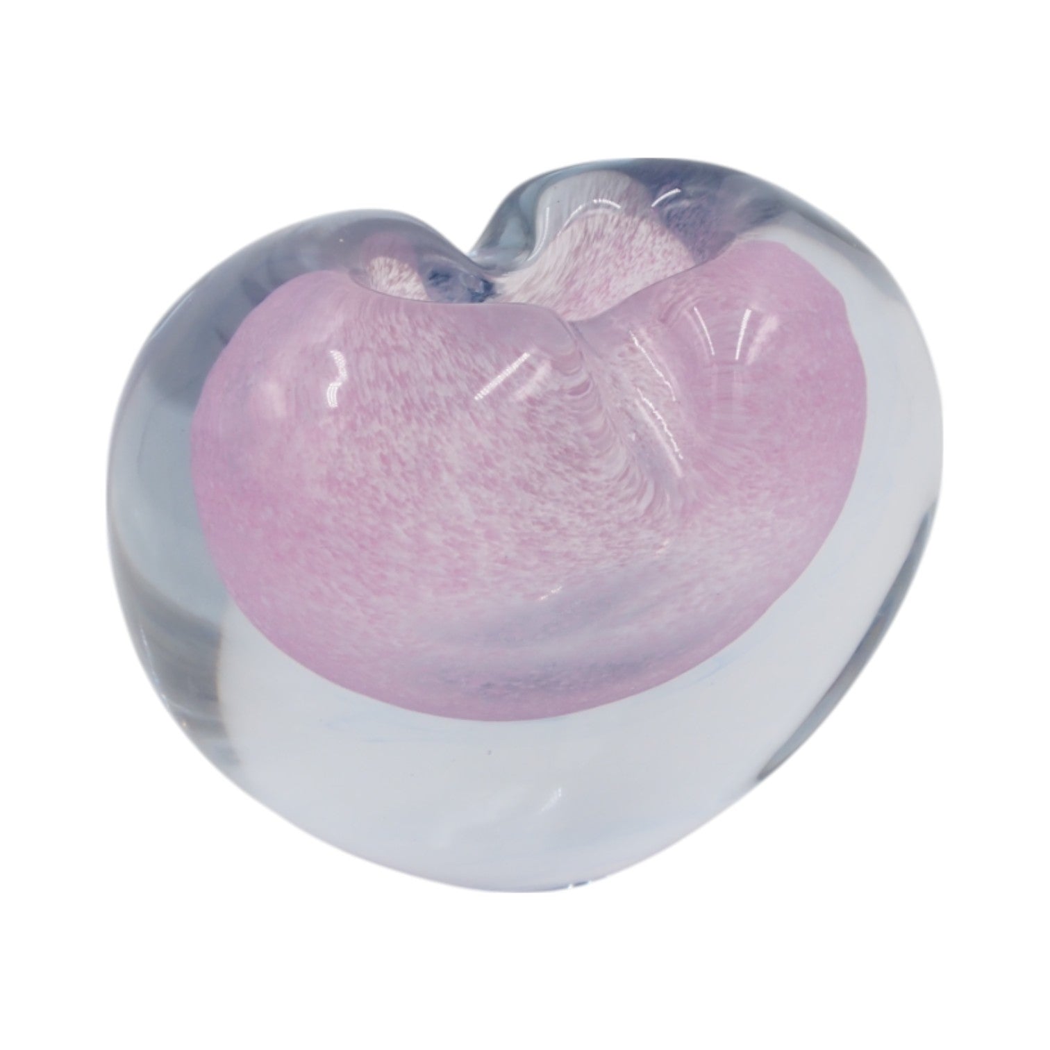 Romantiška ir elegantiška stiklinė dekoracija iš Forma Lumo kolekcijos sužavi subtiliu dizainu ir išskirtine širdelės forma. Rožinis intarpas giliai skaidriame stikle kuria šviesos žaismą ir emocinį šilumos pojūtį – puikiai tinkantį tiek dovanoms, tiek namų interjerui pagyvinti.