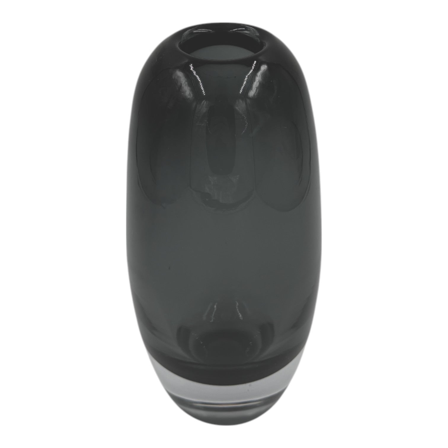 Elegantiška stiklinė vaza su moderniu dūminio stiklo intarpu – tai išskirtinis dekoro elementas, derinantis skaidrumą, formos švarumą ir subtilų kontrastą. Aptaki, ovali forma bei blizgus paviršius suteikia vazai šiuolaikiško žavesio, todėl ji puikiai tiks tiek minimalistiniam, tiek prabangiam interjerui.
