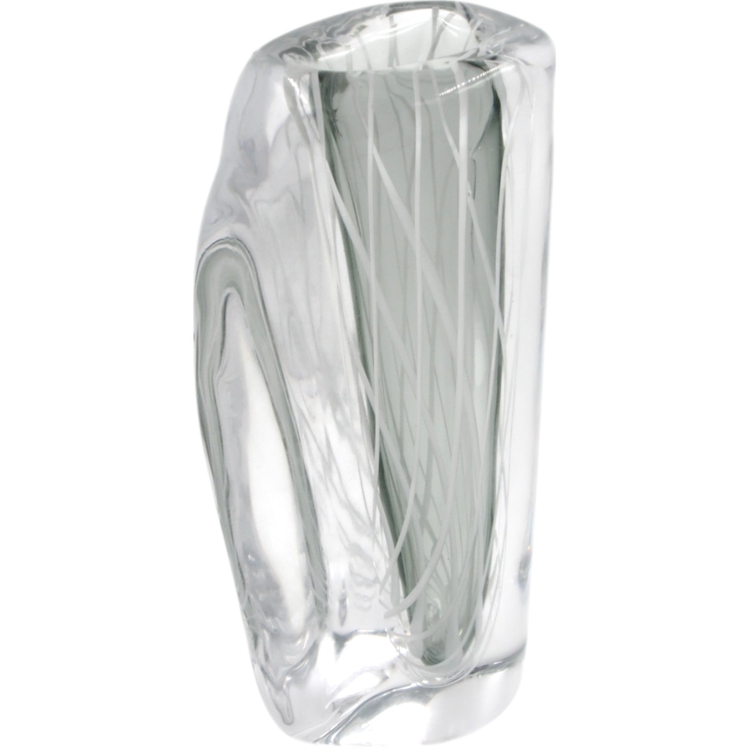 Moderni stiklo vaza su subtiliomis baltomis gyslomis – elegantiškas akcentas bet kuriuose namuose. Asimetriška forma ir skaidraus stiklo dizainas suteikia šiuolaikiškumo pojūtį, o švelnus dekoro raštas viduje sukuria vizualinį gylį. Puikiai tinka šviežioms gėlėms ar dekoratyviniam eksponavimui.