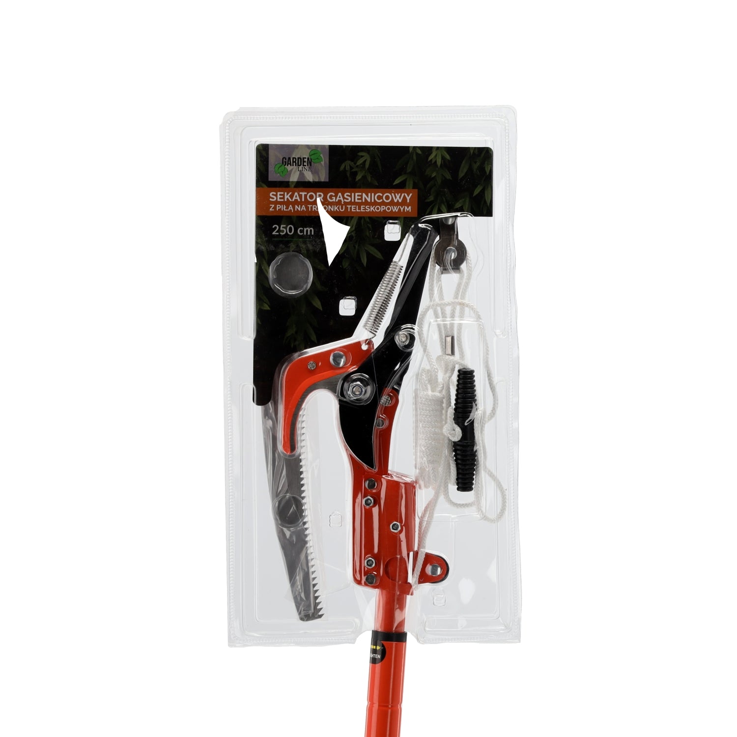 Teleskopinis šakų genėtuvas su pjūklu skirtas patogiam ir saugiam aukštai esančių medžių bei krūmų šakų genėjimui. Įrankis leidžia pasiekti didelį aukštį be kopėčių, todėl darbas tampa saugesnis ir greitesnis. Dėl svirtinio mechanizmo sumažinamos reikalingos pastangos, o papildomas pjūklas leidžia lengvai nupjauti storesnes šakas.