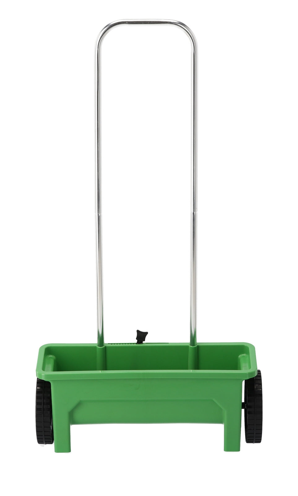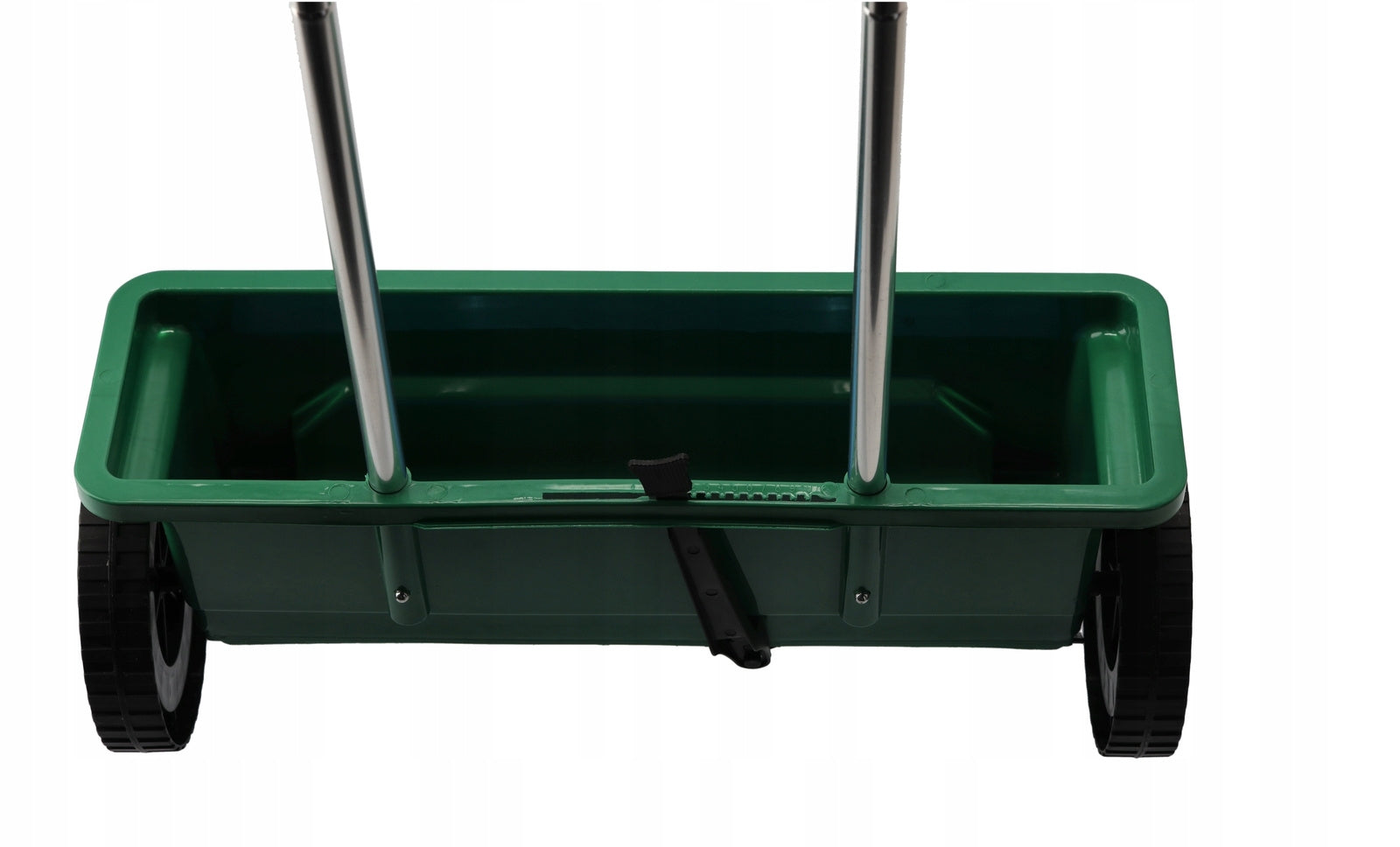 Lengvas, bet tvirtas polipropileno korpusas yra atsparus drėgmei ir cheminėms medžiagoms, o dideli ratai užtikrina stabilų važiavimą net nelygiu paviršiumi. Ergonomiška rankena leidžia patogiai stumti barstytuvą be papildomų pastangų.